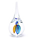 Glastropfen in Blau/Türkis/Goldtopas, handgefertigt im Design-Glasstudio von ArtCristal Bohemia. Der Glastropfen wird aus reinem böhmischem Kristall hergestellt, wobei die tschechischen Glasbläser eine sehr schwierige Technik anwenden, um die farbigen Luftblasen in den Kern zu bekommen.