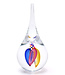 Glastropfen in Blau/Rosa/Goldtopas, handgefertigt im Design-Glasstudio von ArtCristal Bohemia. Der Glastropfen wird aus reinem böhmischem Kristall hergestellt, wobei die tschechischen Glasbläser eine sehr schwierige Technik anwenden, um die farbigen Luftblasen im Kern zu platzieren.