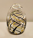Eiförmig geschliffenes Briefbeschwerer mit schwarz/gelber Spirale und Luftblase im Kern, hergestellt aus reinem böhmischem Kristall im Glas des... Lesen Sie mehr..