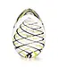 Eiförmiges Briefbeschwerer aus Glas mit schwarz/gelber Spirale und Luftblase im Kern, handgefertigt im Design-Glasstudio von ArtCristal Bohemia. Der Glasbriefbeschwerer wird aus reinem böhmischem Kristall hergestellt, wobei die tschechischen Glasbläser eine sehr schwierige Technik anwenden, um die farbige Spirale und die Luftblase im Kern zu erzeugen.