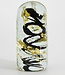 Das Glaskunstwerk ist handgefertigt und besteht aus einer schwarzen Spirale, um die Luftblasen und Blattgoldflocken zur weiteren Dekoration angeordnet sind.