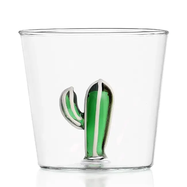 Schöner Glastumbler Cactus Grün aus der Desert Plants Serie der italienischen Designglasmarke Ichendorf Milano. Das Trinkglas wurde von Alessandra Baldereschi entworfen und aus Borosilikatglas handgefertigt. Diese Glassorte ist sehr leicht, aber gleichzeitig sehr stark und kratzfest.