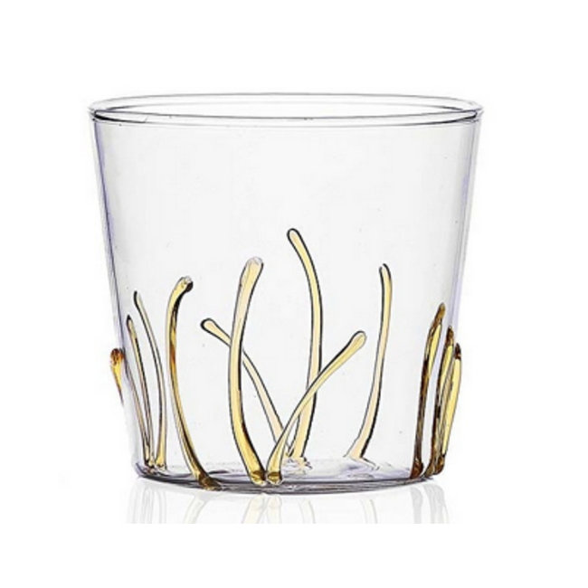 Trinkglas mit bernsteinfarbenem Gras aus der Greenwood-Serie von Ichendorf Milano. Lesen Sie mehr.