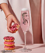 Das Kristall-Kosta-Boda-Champagnerglas Forever yours hat ein schlichtes Design mit einem Motiv in staubigem Rosa, das Romantik symbolisiert. Entwurf Sara Woodrow.