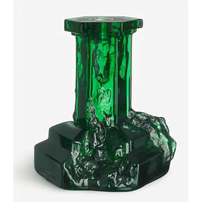 Smaragdgrüner Kerzenhalter aus der Rocky Baroque Serie von Kosta Boda, entworfen von Hanna Hansdotter und 18 cm hoch... Lesen Sie mehr.
