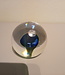 Dieses schöne Leerdam-Glaskunstobjekt wurde nach einem Entwurf von Siem van der Marel bei Royal Leerdam Crystal (NL) geblasen. Diese Leerdam Serica ist wunderschön mit klarem Glas mit blauem und gelbem Kern ausgeführt.