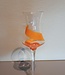 Diese Oranje-Vase wurde 1999 nach einem Entwurf von Siem van der Marel bei Royal Leerdam Crystal (NL) geblasen, und das Oranje-Vase heißt Juliana 90 Jahre (Lathyrusvase).