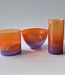 Schöne Leerdam Serica Vase in der Farbkombination Rot/Lila, aus der Galerie- und Einzelhändlerkollektion. Dieses Leerdam Glaskunstobjekt wurde 1983 in der Royal Leerdam Crystal (NL) nach einem Entwurf von Floris Meydam hergestellt.