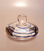Schönes Glasobjekt aus dem Jahr 2000, entworfen von Siem van der Marel und geblasen bei Royal Leerdam Crystal (NL). Dieses Objekt wird auch 'Tintenfass' genannt und ist mit seinem schönen klaren Glas und blauen Linien ein Hingucker. Es sieht so aus, als ob die Kugel ein loser Stopfen ist. Das ist nicht der Fall, das Glasobjekt besteht aus einem Stück.