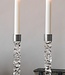 Dieses Set aus 2 Kristallkerzenhaltern ist ± 24 cm hoch, und der Fuß hat einen Durchmesser von ± 10 cm. Sie sind für Standard-Dinnerkerzen geeignet (nicht enthalten).