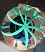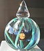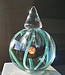 Diese Leerdam Serica wurde 1998 in der Leerdamer Glasbläserei von Royal Leerdam Crystal (NL) nach einem Entwurf von Siem van der Marel geblasen. Die Kristallkugel enthält einen schönen blauen Kern, türkisfarbene Linien und hat einen abnehmbaren Stopfen, genannt 'ein Hauch von Friesland'.