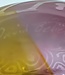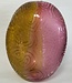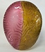 Das gelb/bernstein/rosa gefärbte exklusive Glaskunstwerk ist signiert und hat eine Größe von 16 x 18 x 36 cm und wiegt circa 4 kg.