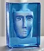 Kristallen serica ‘Azur’ van Bertil Vallien voor Kosta Boda – Uniek Kristallen Object met Gematteerd Portret, handgemaakt uit zeeblauw Zweeds kristal (Gesigneerd & Gelimiteerd)