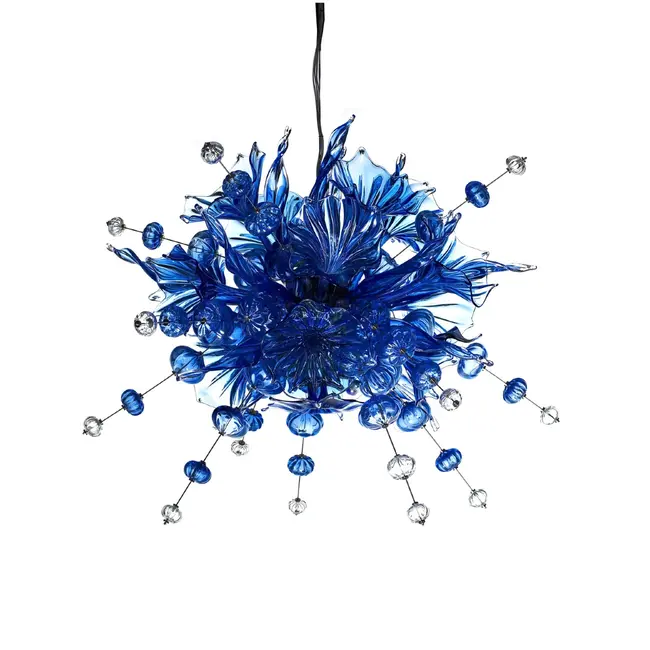 Blauwe glazen kroonluchter uit de Kumulus serie van de Zweedse designstudio BSWE...