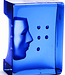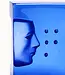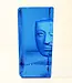 In het diepblauwe kristal staat de afdruk van een gezicht, een terugkerend en iconisch motief van Bertil Vallien dat ook terug te vinden is in zijn beroemde glazen boten.