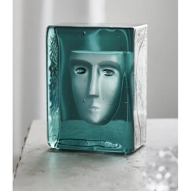 De kristallen Serica ‘Azur’ van Kosta Boda, ontworpen door glasmeester Bertil Vallien, is een fascinerend kunstobject dat een verhaal vertelt en de kijker uitnodigt tot eindeloze bewondering. In de helder groene kern bevindt zich een verfijnd portret, als een herinnering omgeven door rust, gevangen in een dikke laag helder kristal die het masker verstilt en doet zweven.