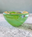 Kosta Boda waxinelichthouder Atoll door Anna Ehrner. De limoengroene waxinehouder is gemaakt uit Zweedse kristalglas en voorzien van een 'swirl'.