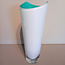Deze glaskunst vaas werd in 2010 naar ontwerp van Carina Riezebos geblazen bij Royal Leerdam kristal, en maakt deel uit van haar serie 'Batman'. Mooi vormgegeven en uitgevoerd blank kristallen voet, witte buitenzijde en mintgroene kern.
