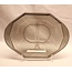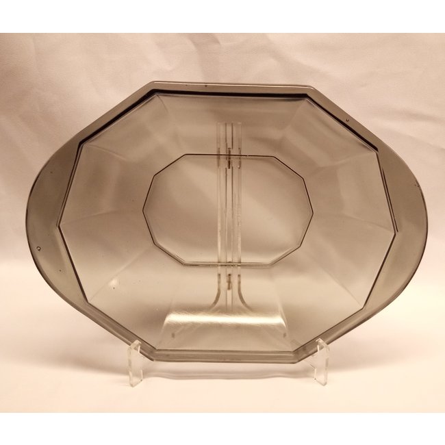 Mooie grijze schaal in persglas uit 1921 naar ontwerp van, van de Bazel. Deze schaal is geblazen bij de Glasfabriek te Leerdam.
