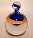 Schitterend glasobject uit 2000, naar ontwerp van Siem van der Marel geblazen bij Royal Leerdam Crystal. Met zijn fraaie kleuren van helder met blauwe kern en gele band een prachtig sieraad voor in elk interieur. Uitgebracht in een oplage van slechts 50 exemplaren waarvan dit nummer 5 bedraagt.