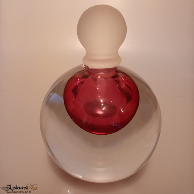 Kristallen bol met stop, welke in 2005 werd geblazen bij Royal Leerdam Crystal naar ontwerp van Siem van der Marel. Prachtig uitgevoerd met mooie helder roze kern en gematteerde stop.