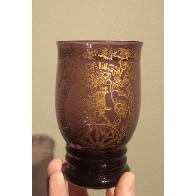 Deze beker is gemaakt ter gelegenheid van, het 25 jarig regeringsjubileum van Wilhelmina.