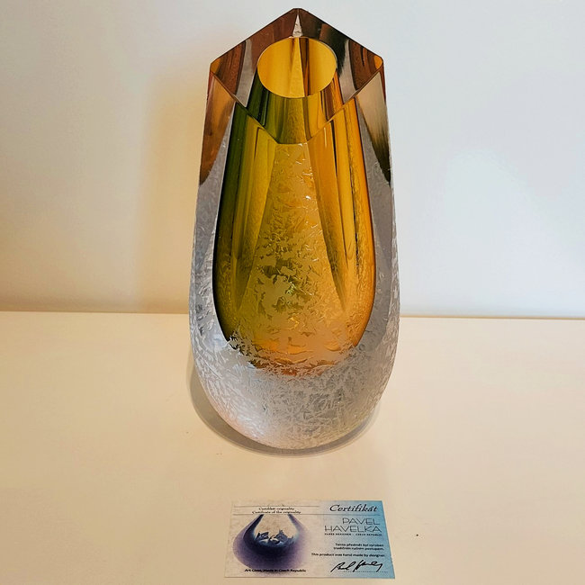 Het object wordt geleverd met Echtheidscertificaat en is onderop voorzien van een gegraveerde signatuur. Wij zijn sinds kort officieel dealer van de glaskunst van meester glaskunstenaar Pavel Havelka.