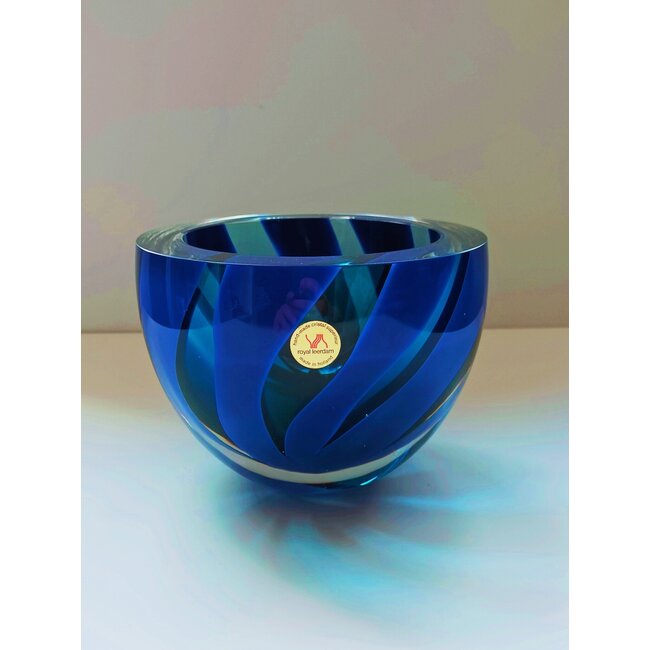 Is gesigneerd. Verkeert in uitstekende conditie, afgezien van wat krasjes onderop. Het Leerdam glaskunst object heeft een diameter van 13 cm en is 10 cm hoog.