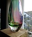Prachtige regenboog vaas naar ontwerp van Siem van der marel, geblazen bij Royal Leerdam Crystal, he..